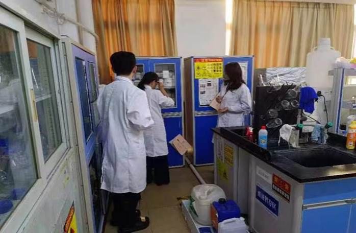 2024年4月7日下午,郑育声副经理、闵义副经理、实验室安全员王小兵老师、实验室危化品管理员吴岚芳老师组成检查组,在生物楼、农科楼等开展公司教学实验室、科研实验室安全例行检查工作,相关科研团队负责人、教辅老师以及部分研究生同学配合检查。