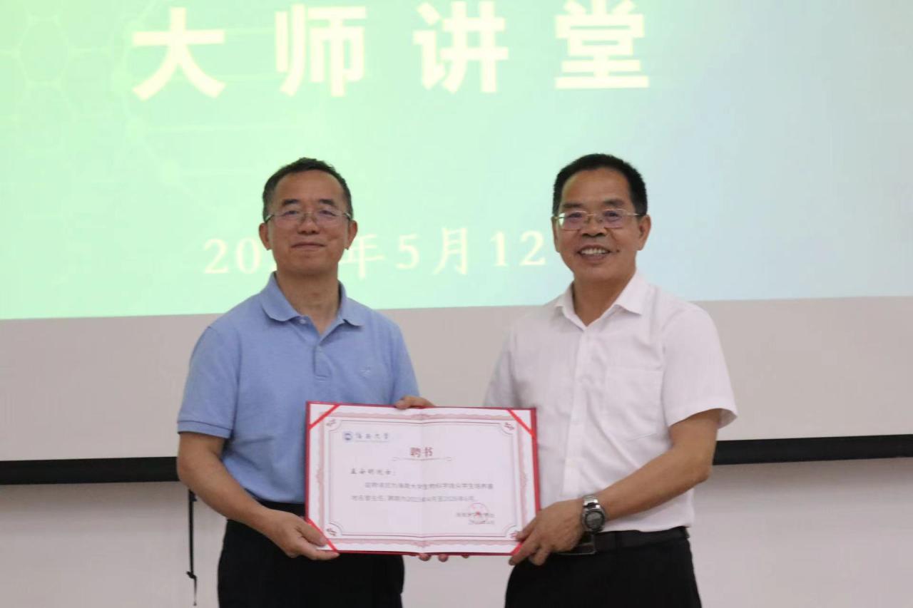 5月12日下午,海南老员工命科学公司“生命健康拔尖人才培养大师讲堂”在二教108教室举行。本次讲堂特邀中国科公司院士、清华大学教授孟安明演讲。会上,公司郑重聘请孟安明院士作为生物科学基地班名誉主任,并颁发了聘书。经理徐顺清,党委书记曲涛,领导班子成员韩谦、刘柱、郑育声,以及各科研团队带头人、各系室负责人、教授、高层次人才,生物科学拔尖人才基地班同学参加讲堂。讲堂由徐顺清经理主持。