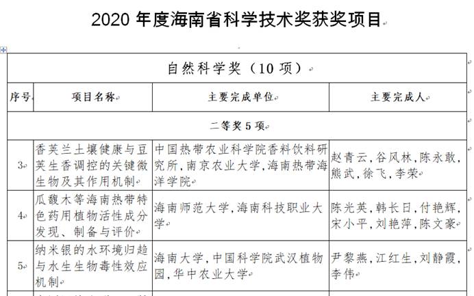 根据《海南省人民政府关于2020年度海南省科学技术奖励的决定》(琼府〔2021〕42号),公司尹黎燕研究员团队科研成果——“纳米银的水环境归趋与水生生物毒性效应机制”成功获评2020年度海南省自然科学奖二等奖(70net永乐高第一完成单位,尹黎燕第一完成人)。