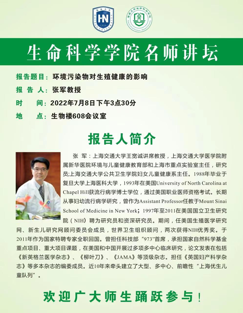 生命科学公司名家讲坛——环境污染物对生殖健康的影响(上海交通大学张军教授)