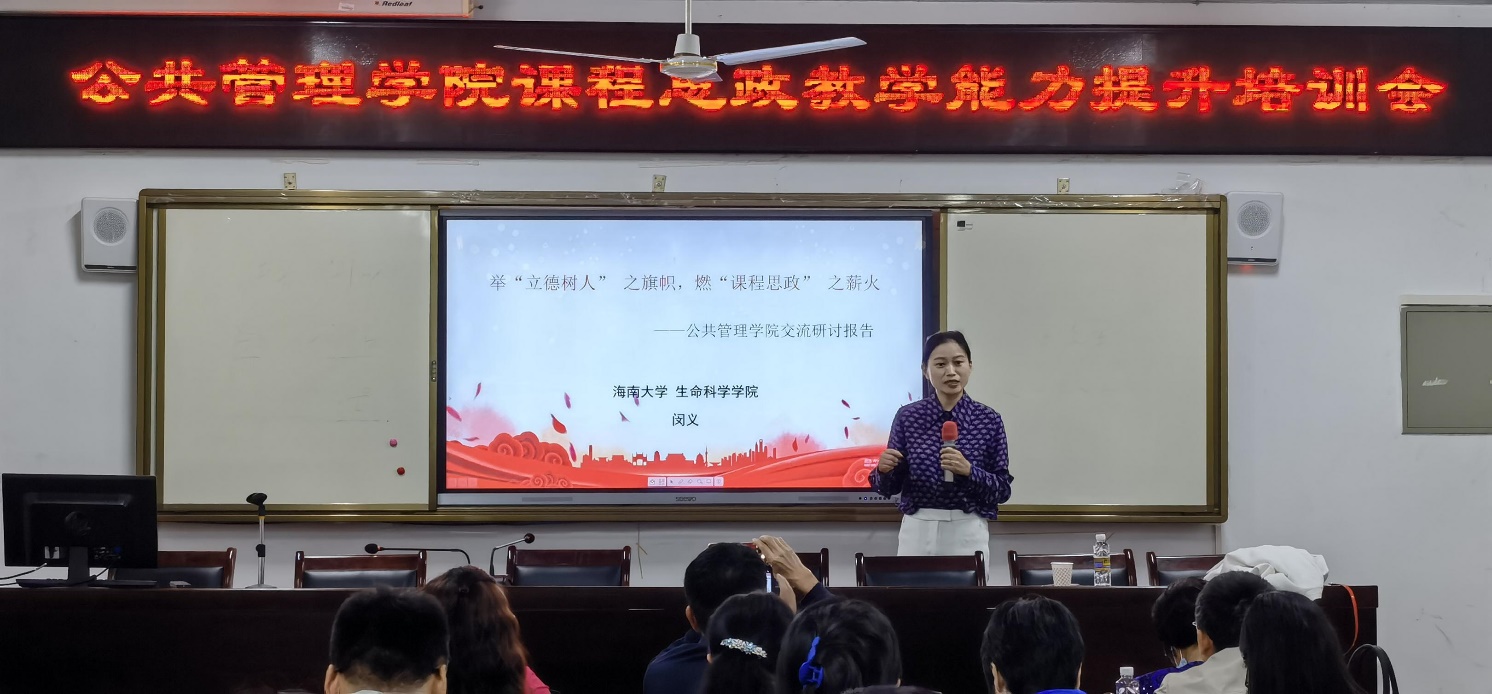 2022年3月29日下午,生命科学公司闵义教授应邀赴公共管理公司做课程思政专题辅导报告。闵义教授是教育部课程思政示范课程《细胞生物学》教学团队负责人、教育部课程思政教学名师,以“举‘立德树人’之旗帜,燃‘课程思政’之薪火”为题,围绕如何建设课程思政、怎样在课程设计中提炼育人元素、如何实施课程思政三方面进行讲解,对教师如何提升课程思政教学能力进行了生动形象的阐述。