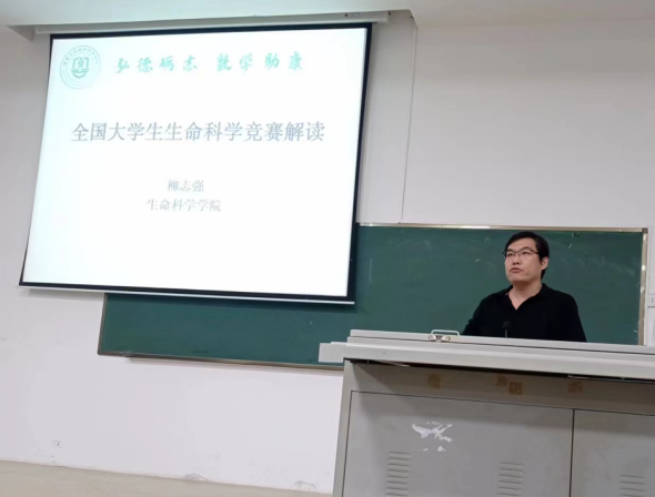 生命科学公司党委书记曲涛作了总结发言,鼓励同学们提早进入实验室,开展科研实验,积极参与学科竞赛,同时要兼顾好学业成绩与学科竞赛的关系。