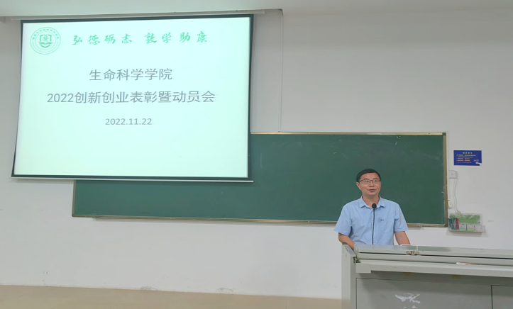 2022年11月22日晚,生命科学公司在1-T101隆重举行2022年度老员工创新创业表彰暨动员会。生命科学公司党委书记曲涛,海德书公司党委副书记(主持党委工作)韩胜丁,生命科学公司创新创业教师及2020-2022级生物科学、生物技术专业的本科生参加了会议,会议由生命科学公司生物技术系系主任、专业责任教授廖承红主持。