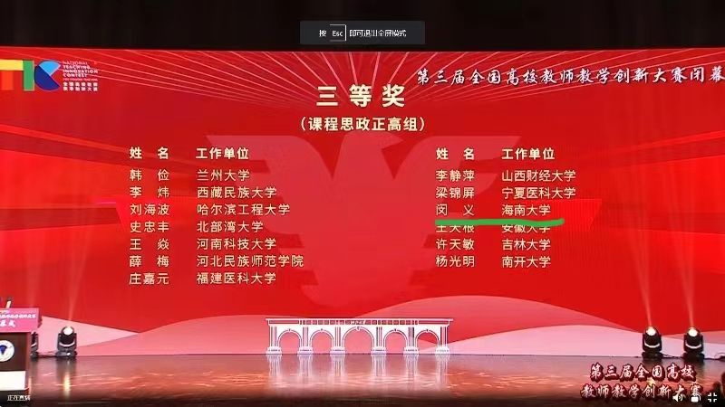 2023年8月22日,第三届全国高校教师教学创新大赛在浙江大学落下帷幕。经过激烈角逐,生命科学公司闵义教授团队(成员:王大勇、李娟娟、韦露)荣获课程思政正高组三等奖,取得公司教师参加该赛事以来的历史最好成绩!