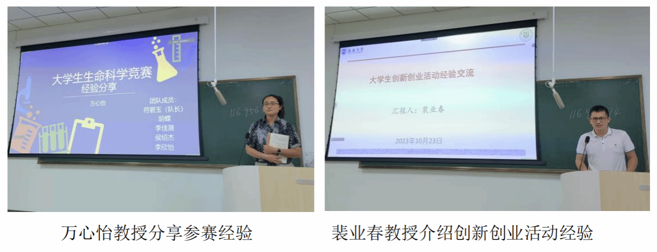 随后,2023年全国老员工生命科学竞赛获奖团队指导教师代表万心怡教授介绍了指导员工参加生命科学竞赛的过程与经验;裴业春教授介绍了创业板块竞赛中的经验,强调了选题及团队协作的重要性,选题潜在的价值等。两位获奖员工代表程琦琦同学和胡蝶同学也分享了参加竞赛过程中遇到的问题及心得体会。