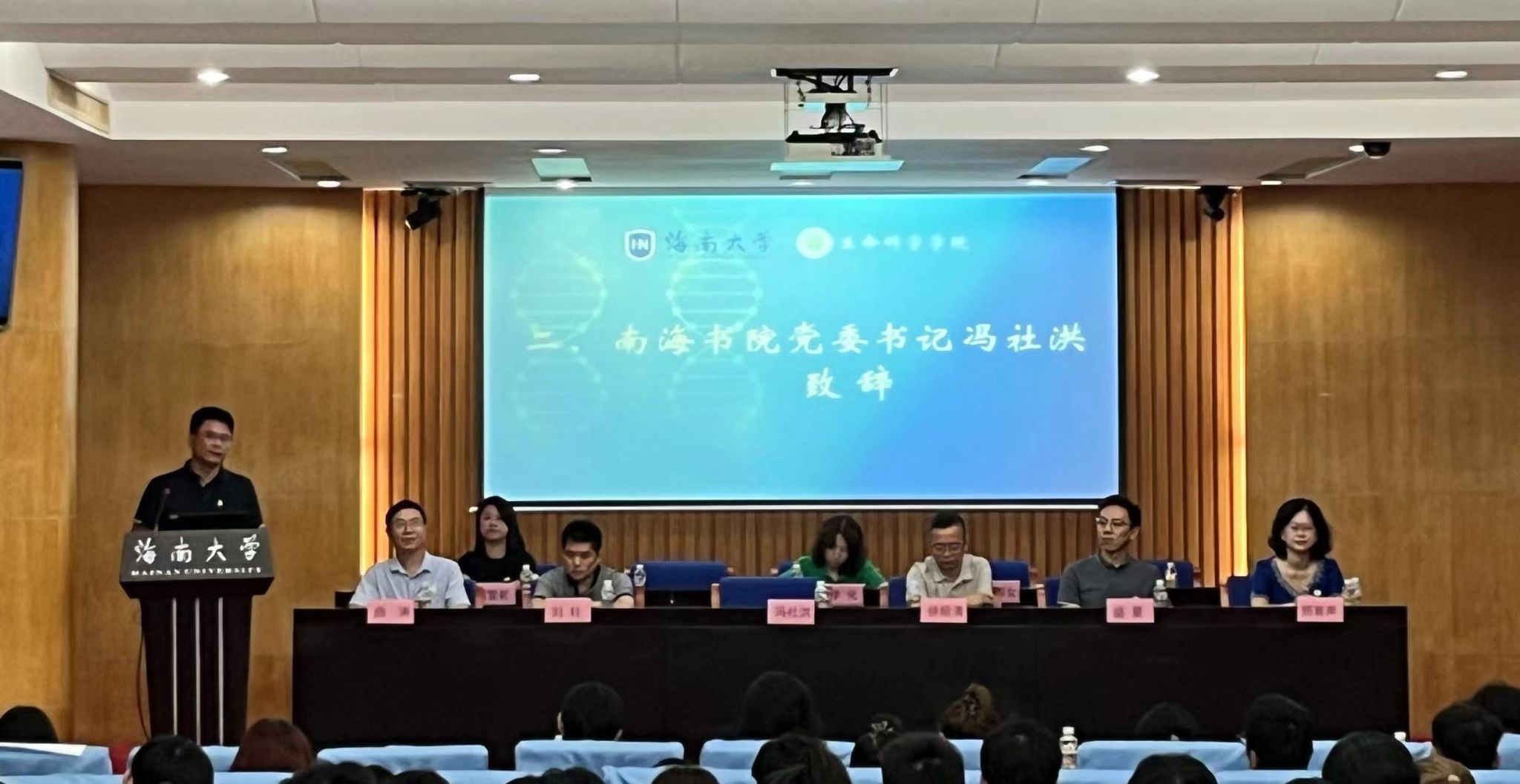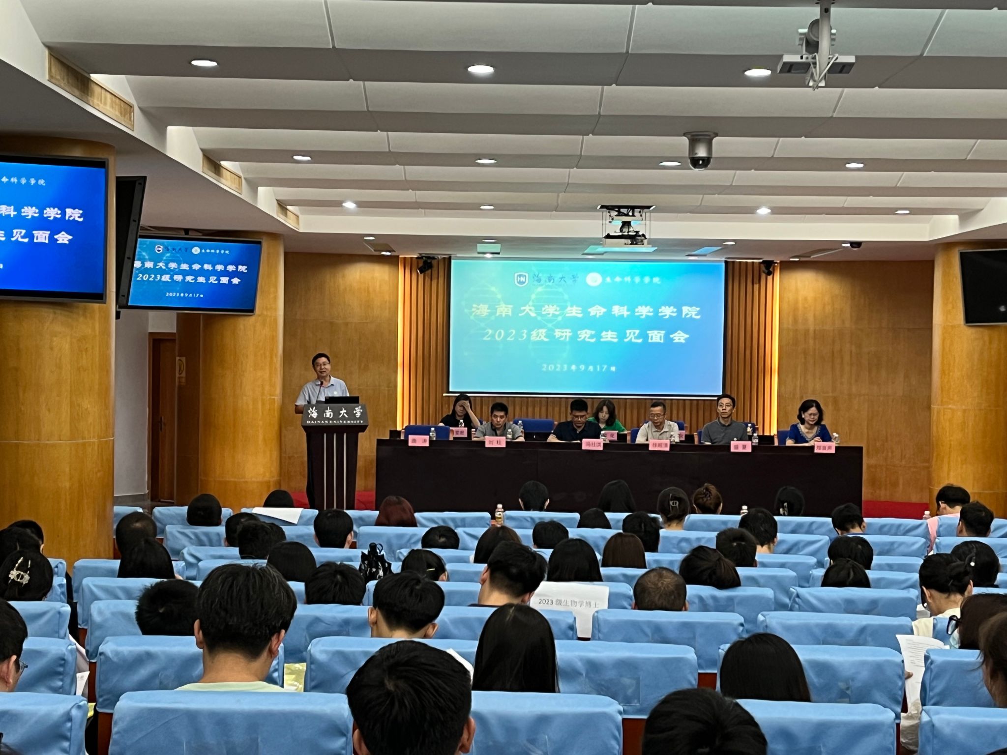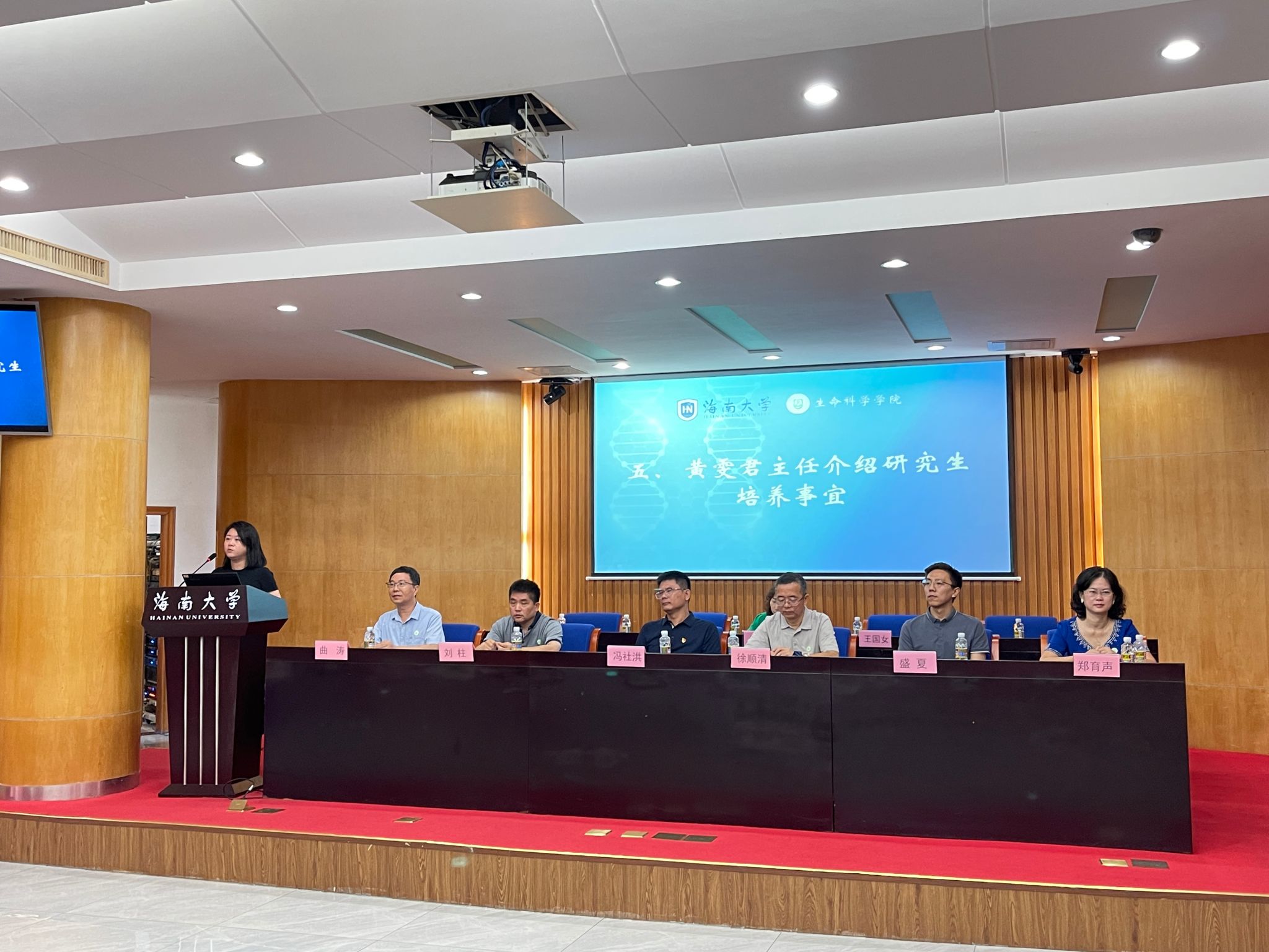 2023年9月17日上午,海南老员工命科学公司在公司行政楼一楼报告厅顺利召开2023级研究生见面会。公司党委书记曲涛主持,生命科学公司徐顺清经理、南海书公司党委书记冯社洪、生命科学公司刘柱副经理、郑育声副经理出席会议,研究生导师代表盛夏老师、综合办主任李化老师、教务办主任黄雯君老师、研究生教务管理王国女老师以及全体2023级研究生参加会议。