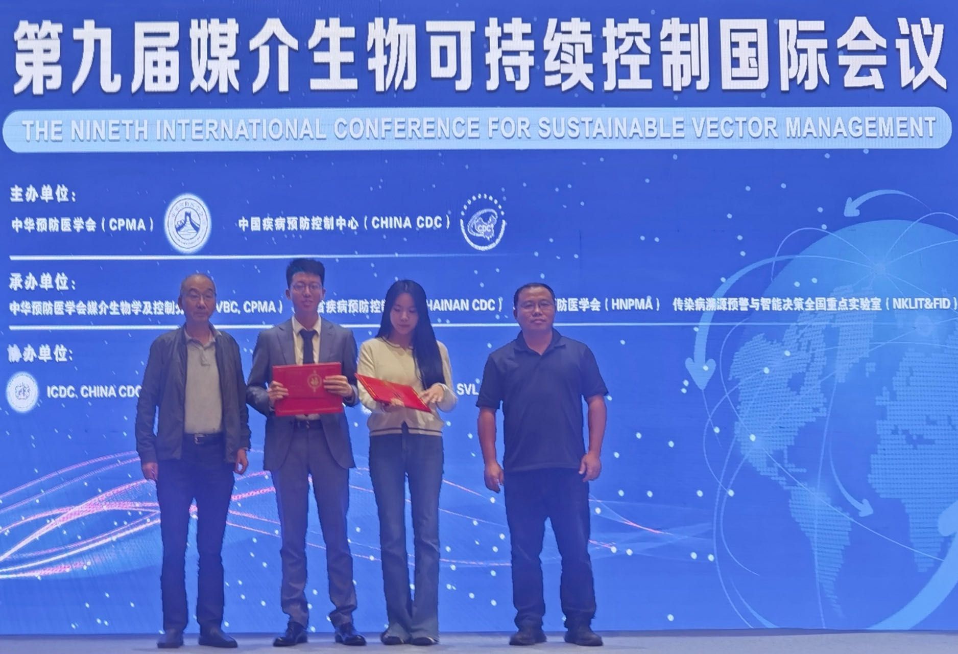 2023年12月5日-7日,第九届媒介生物可持续控制国际会议在海南海口召开,中华预防医学会和中国疾病预防控制中心主办,300余位来自全球各大高校和科研院所的院士专家和青年学者参加。在员工报告专场会上,70net永乐高病媒生物学团队博士生于泓潇同学进行了题目为“Effect of the Serine Protease on Spinosad Degradation in Aedes aegypti”的英文报告,并荣获一等奖。该报告主要内容:通过构建多杀菌素亲和柱,筛选埃及伊蚊体内与多杀菌素降解相关的潜在代谢酶,并通过蛋白表达与基因敲低进行体内外验证,该研究结果对于揭示埃及伊蚊对多杀菌素代谢产生抗性的潜在新靶点具有重要的研究意义。