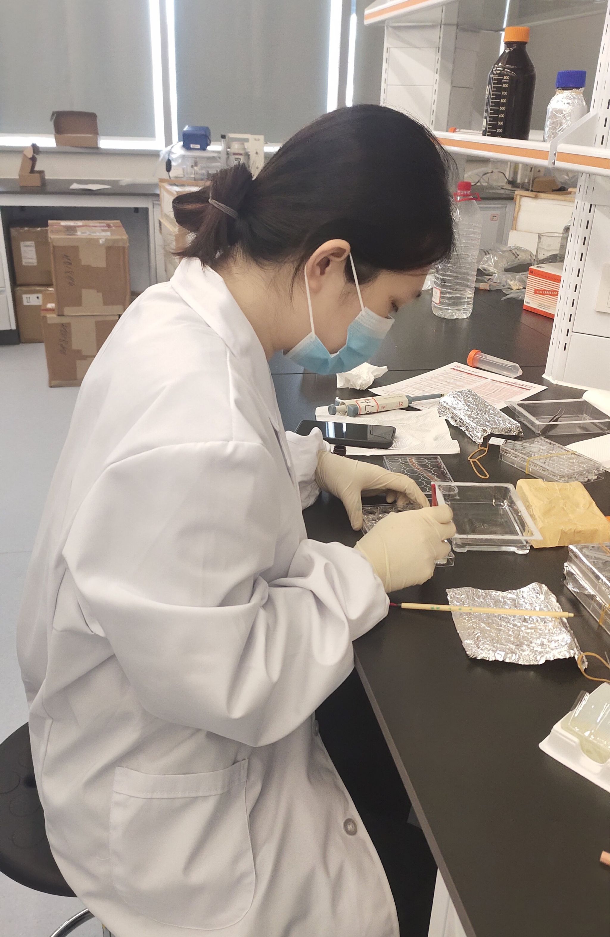 在实验室进行组织切片免疫荧光染色实验