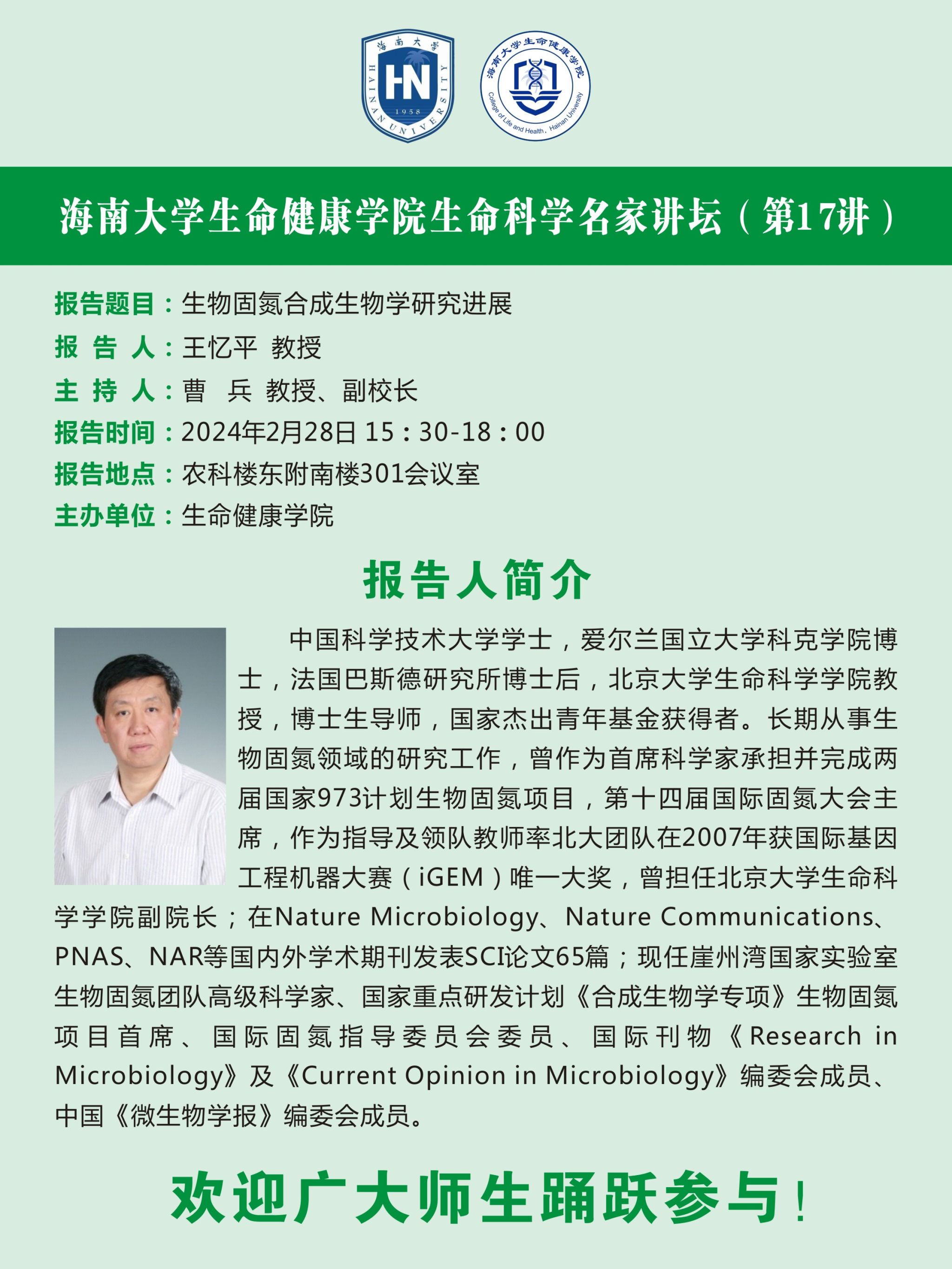 70net永乐高生命科学名家讲坛(第 17 讲)